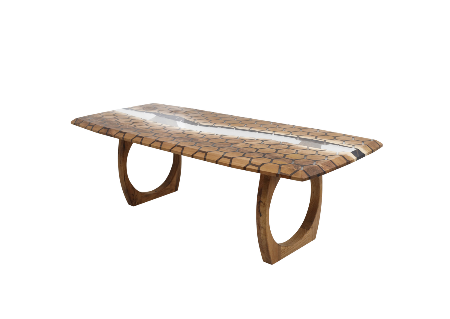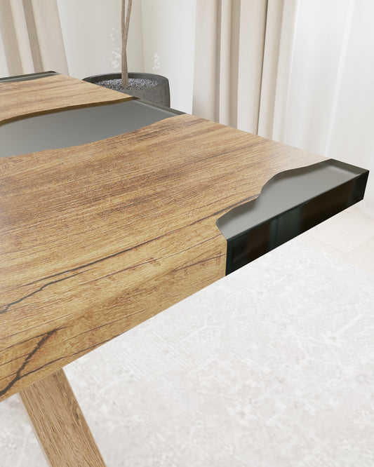 Exquisite Handwerkskunst - jedes Möbelstück erzählt eine Geschichte. Jeder Tisch ist ein Meisterwerk, geformt aus sorgfältig ausgewähltem Walnussholz, bekannt für seine tiefe, warme Farbe und auffällige Maserung. Das Epoxidharz fügt eine einzigartige Ästhetik hinzu und verstärkt die Haltbarkeit.