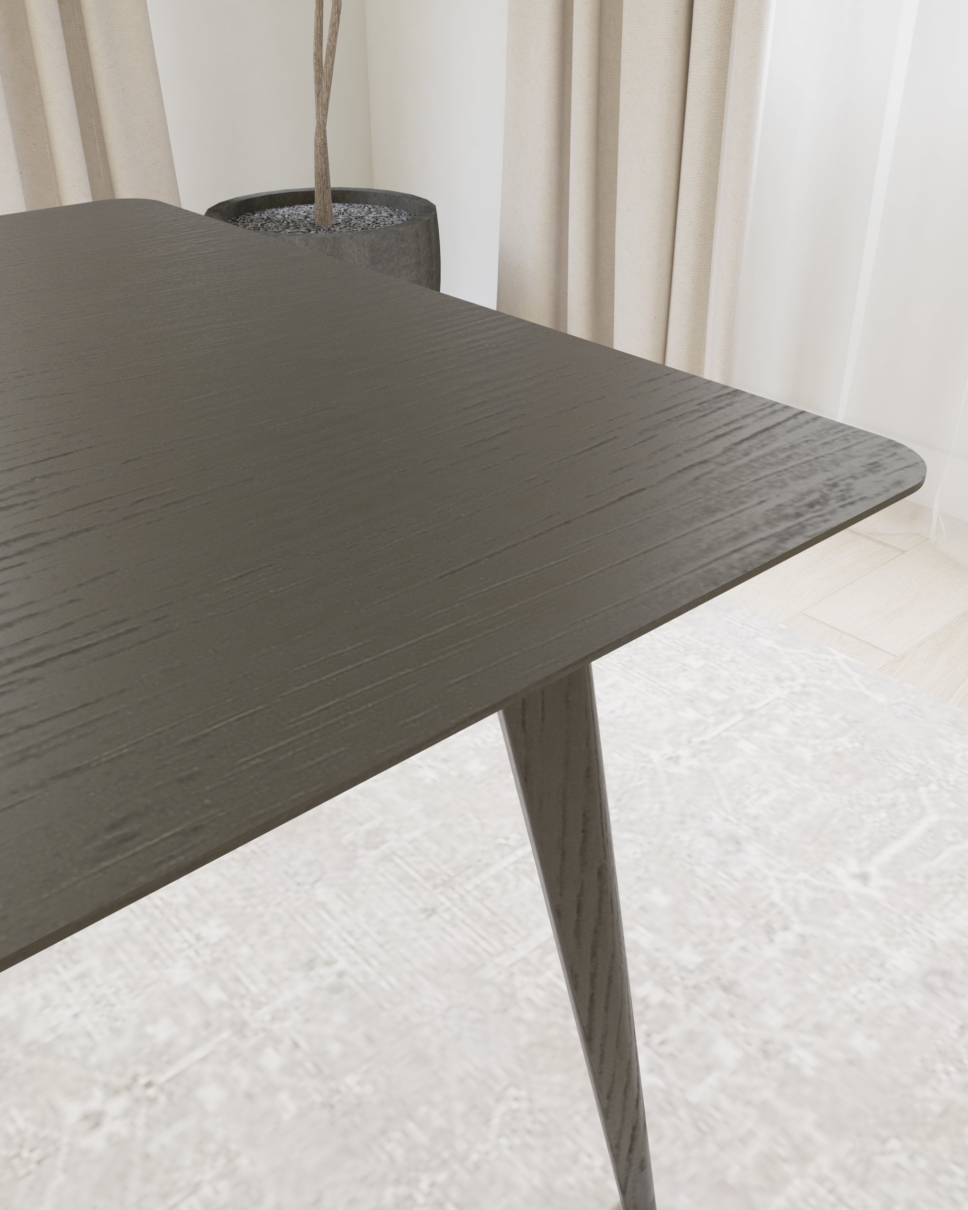 Sowohl die Tischplatte als auch die Tischfüße bestehen aus vollmassiver Eiche, was für Langlebigkeit und natürliche Schönheit sorgt.